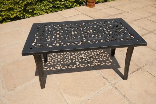 The Coffee Table 95cm x 53cm (Rectangle) is a beautifully crafted cast aluminium table, designed for both indoor and outdoor use. Its intricate design, weather-resistant finish, and versatile colour options make it a stylish yet durable addition to any space.