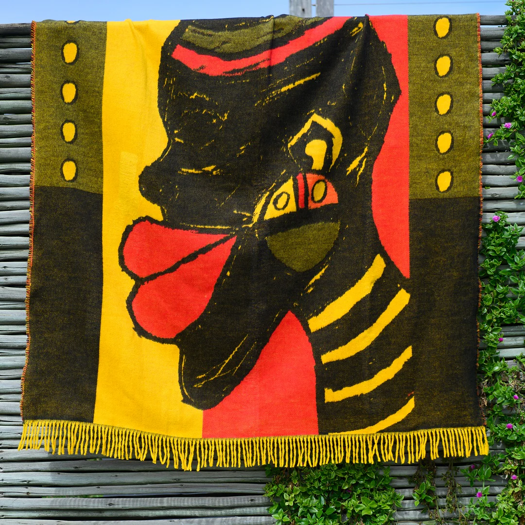 Isibusiso Sabaphansi Wrap – 140×180 cm, 100% acrylic jacquard weave. Designed by Viva Sage, inspired by African culture.